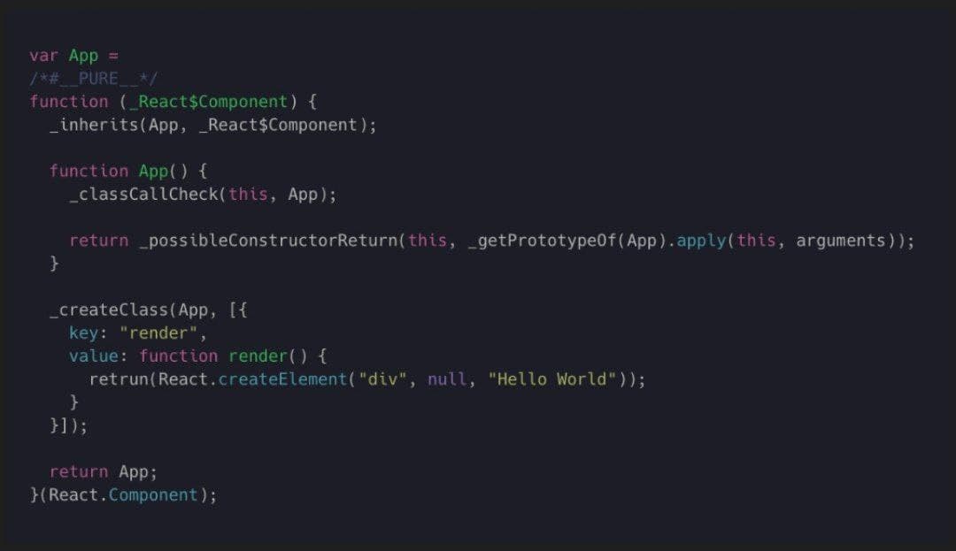 و اما در ادامه به به خروجی کد کامپوننت کلاسی برای Hello World که توسط Babel توجمه شده است می پردازیم: