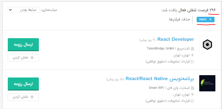 - بازار کار برنامه نویسی فرانت اند با ری اکت