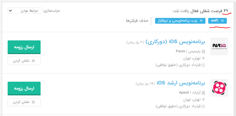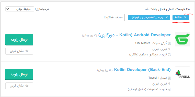 همان طور مشاهده می کنید طبق آمار وب سایت جابینجا تعداد آگهی های استخدام برای ریکت نیتیو 296، برای سوئیفت 49، برای جاوا 286 و برای کاتلین 68 می باشد.